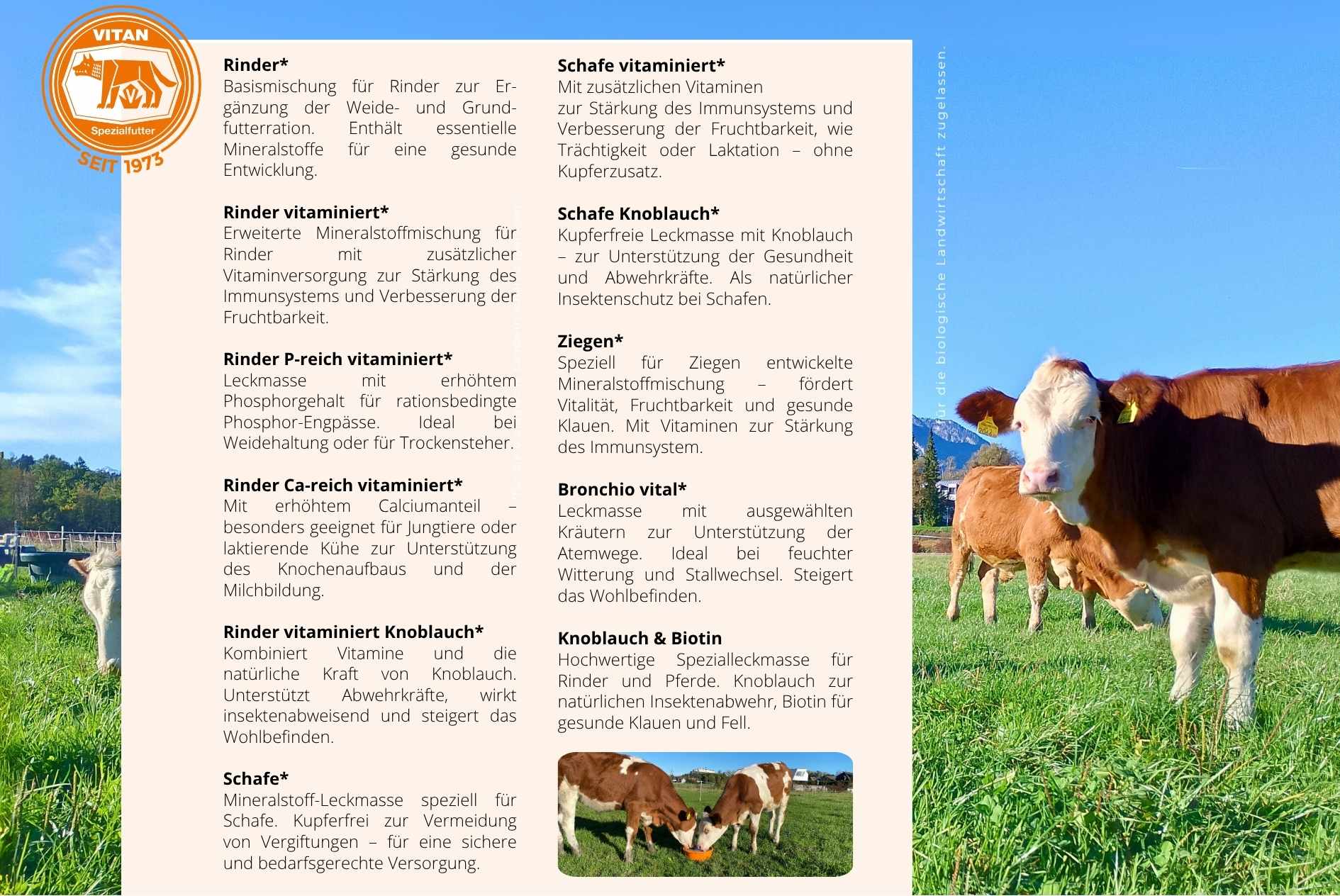 Zusätzlich bietet Vitan ein großes Sortiment an bio tauglichen Leckmassen für jede Tiergruppe.